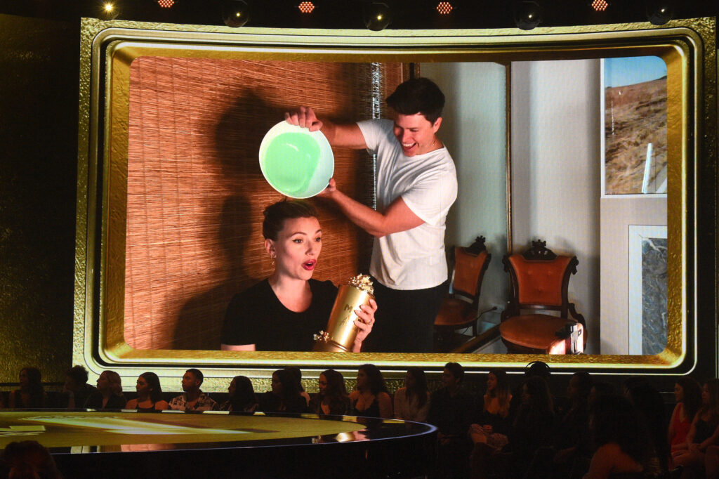 Billy Porter presented the award from his home and Johansson accepted from hers, but the best part was when her husband, Saturday Night Live star Colin Jost, slimed her forgetting that slime is on the Nickelodeon Kids’ Choice Awards and not the MTV Movie & TV Awards.