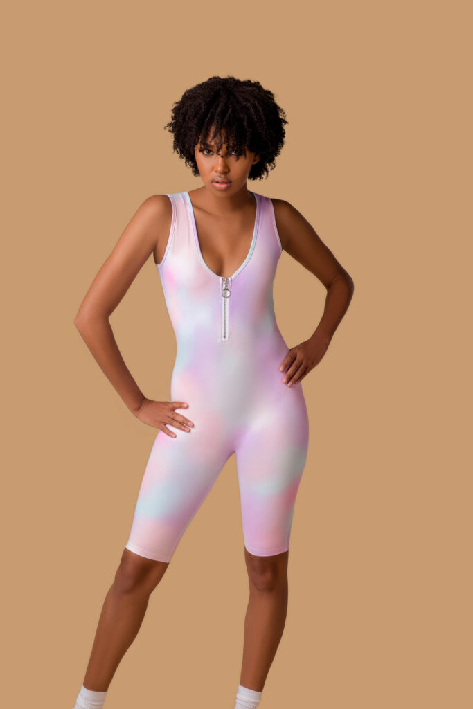 Relax or work out in the one-piece bodysuit that does it all. The multicolor, lightweight fabric is soft as a cloud and completely breathable, so you stay comfortable and cool during any activity.