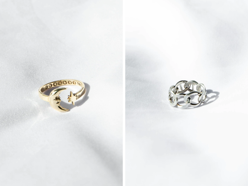 The two rings that we’re adding to our collection are the Luna Ring ($50) and The Chain Character Ring ($60) which you can purchase on the brand’s website now.