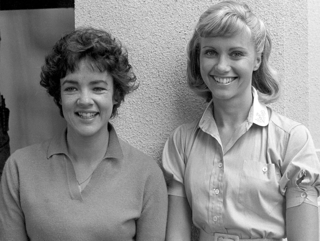 Actresses and co-stars Stockard Channing, left, and Olivia Newton-John ready themselves for their roles in the movie version of “Grease,” in Los Angeles, Aug. 30, 1977. | Photo Credit: AP Photo/Nick Ut