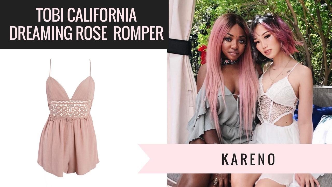 We are all obsessed with Karen Yeung’s style. She always brings so much creativity and color to her outfits, nailing every theme! Her Coachella ‘Fairychild’ look was the perfect combination of pretty and quirky and proves that shorts and bodysuits aren’t the only options for you. You can achieve her look with this adorable TOBI Romper from their Festival Styles!