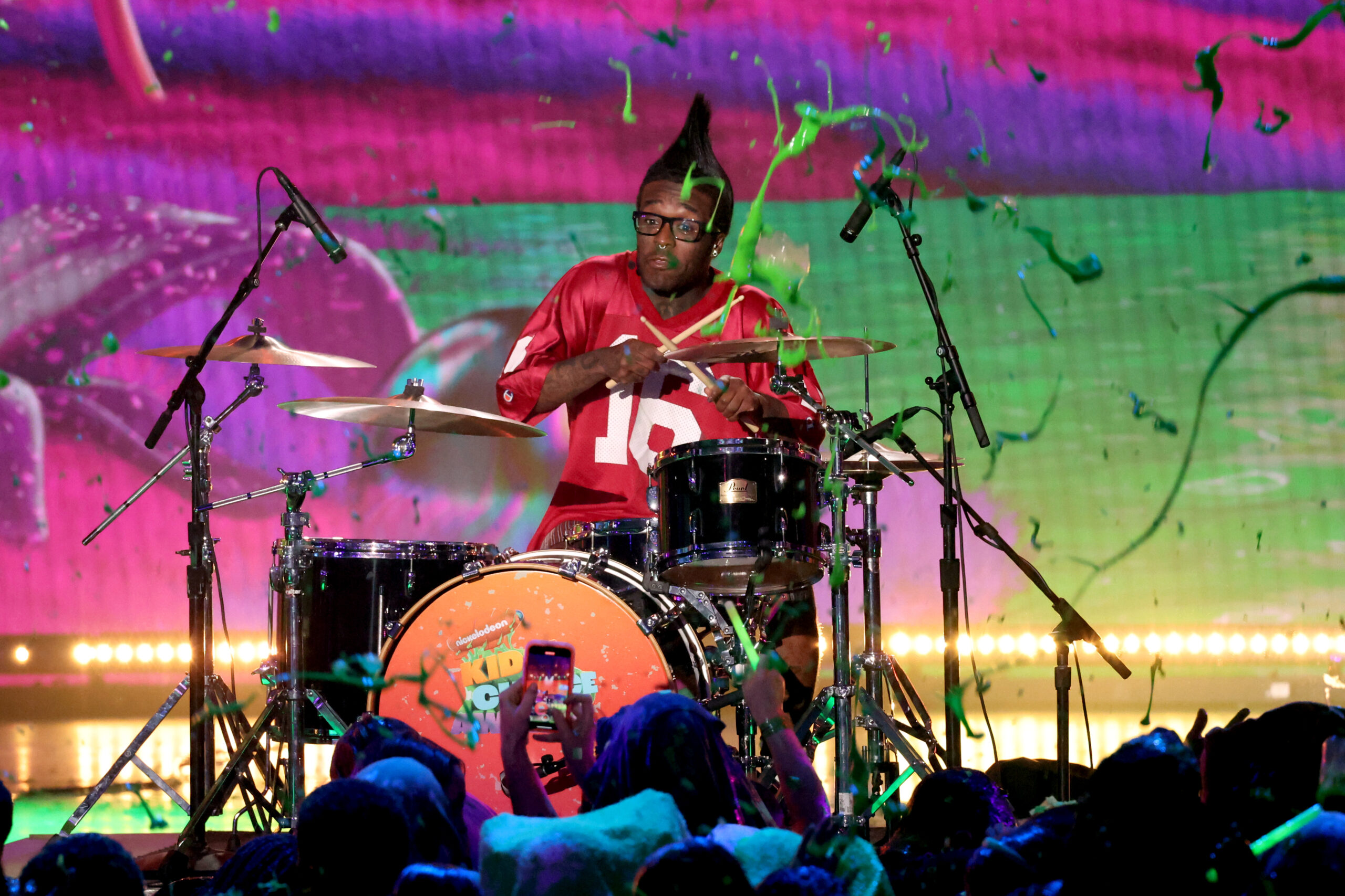 Lil Uzi Vert and 8-year-old drum prodigy, Justin Wilson II engaged in a drum-off before slime jets were activated for a gooey surprise.
