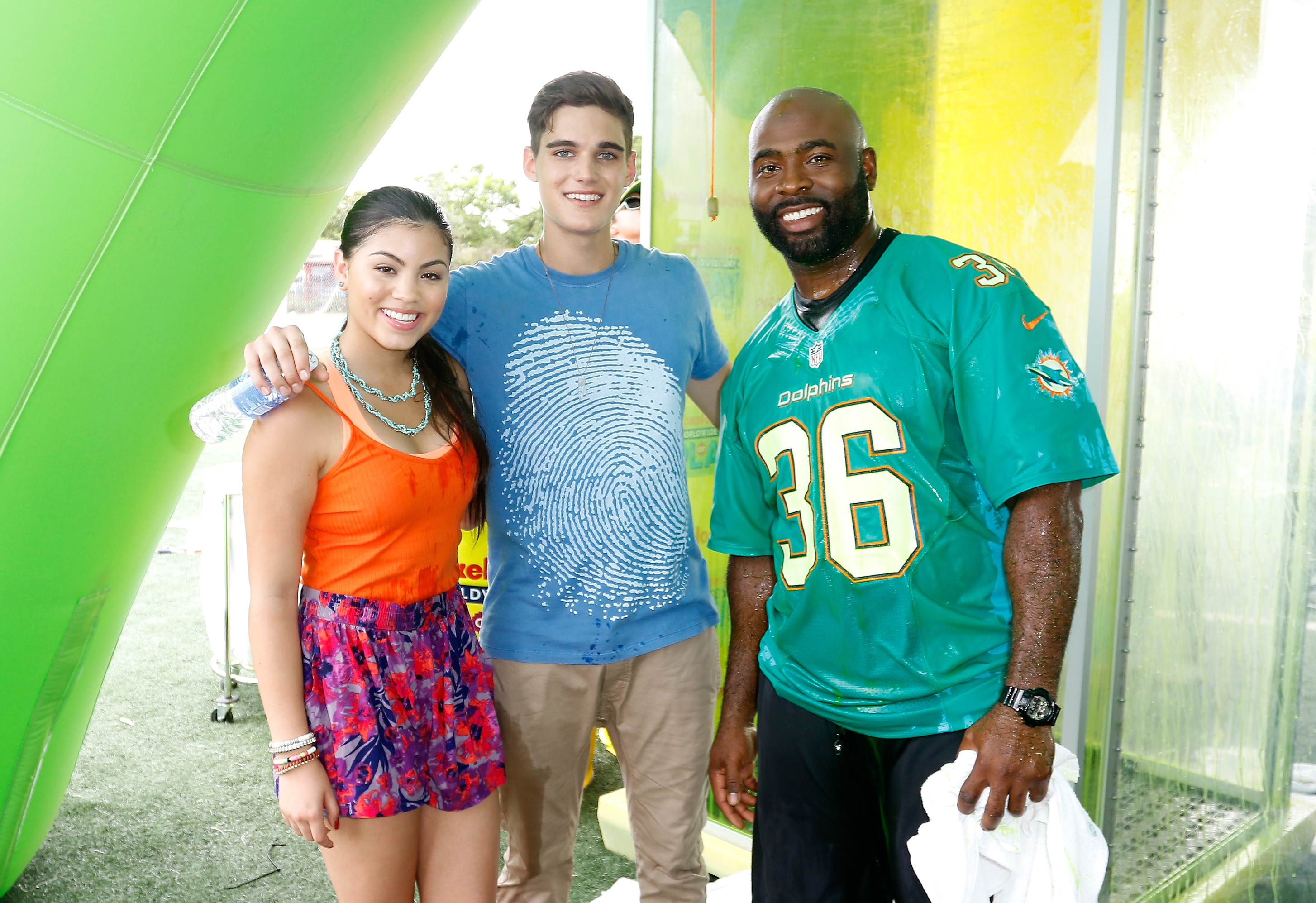 MIAMI GARDENS, FL – JULY 30: (L-R) Paola Andino, Nick Merico and Former Miami Dolphins Fullback Lousaka Polite attend Nickelodeon’s Road To The Worldwide Day Of Play at Betty T. Ferguson Recreation Complex on July 30, 2015 in Miami Gardens, Florida. (Photo by John Parra/Getty Images for Nickelodeon)