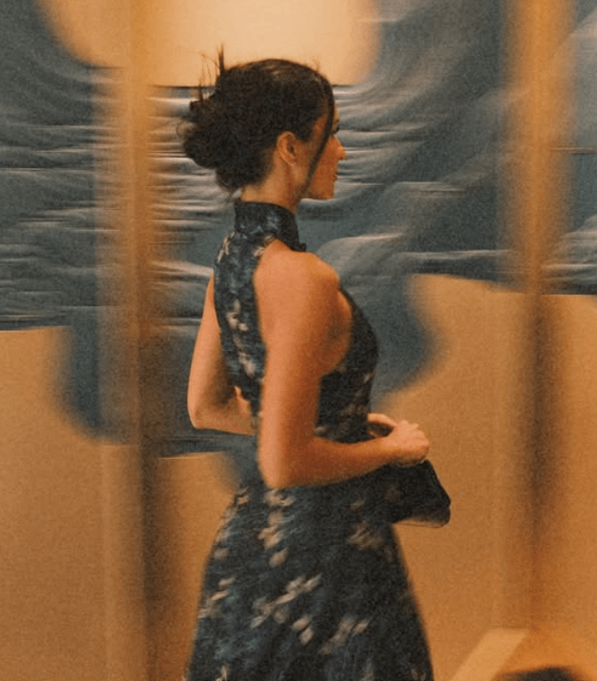 Elegant yet modern, the design fused contemporary tailoring with traditional Chinese craftsmanship, featuring delicate pankou buttons often seen on classic cheongsams. But the true magic of the dress lived in its hidden storytelling details.