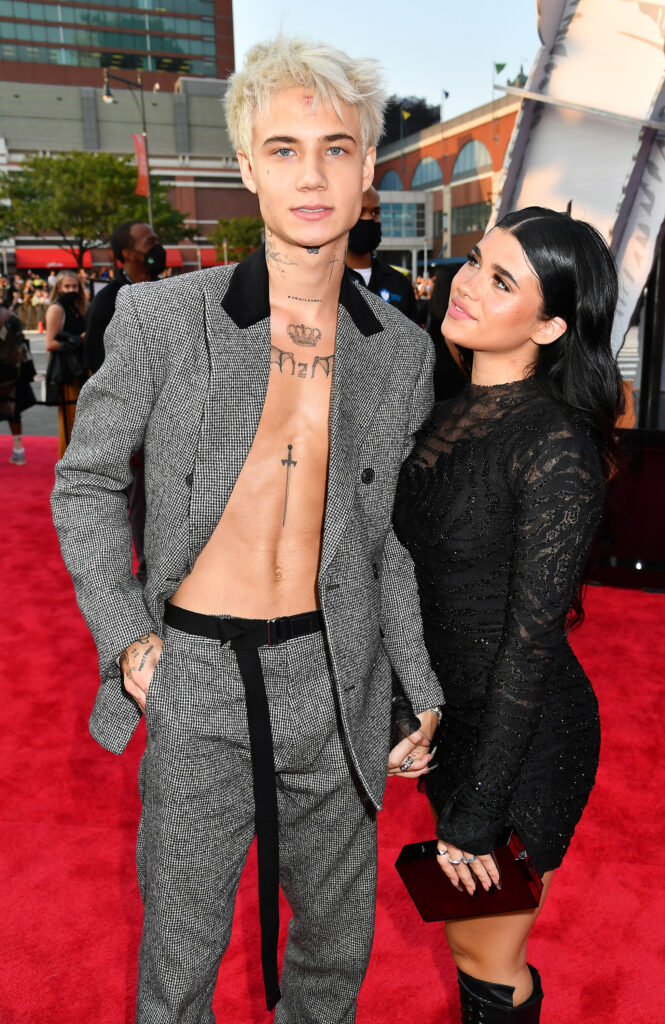 Both TikTok stars and musicians, Nessa Barrett and Jaden Hossler shared their first experience on the red carpet together in such a loving fashion. The two kept their eyes locked on each other the entire time in their coordinating looks. Hossler, who is better known by his stage name Jxdn, was nominated for his first VMA ever, “Push Performance of the Year,” for his performance of his hit single “Think About Me,” which was released under Travis Barker’s record label, DTA Records.