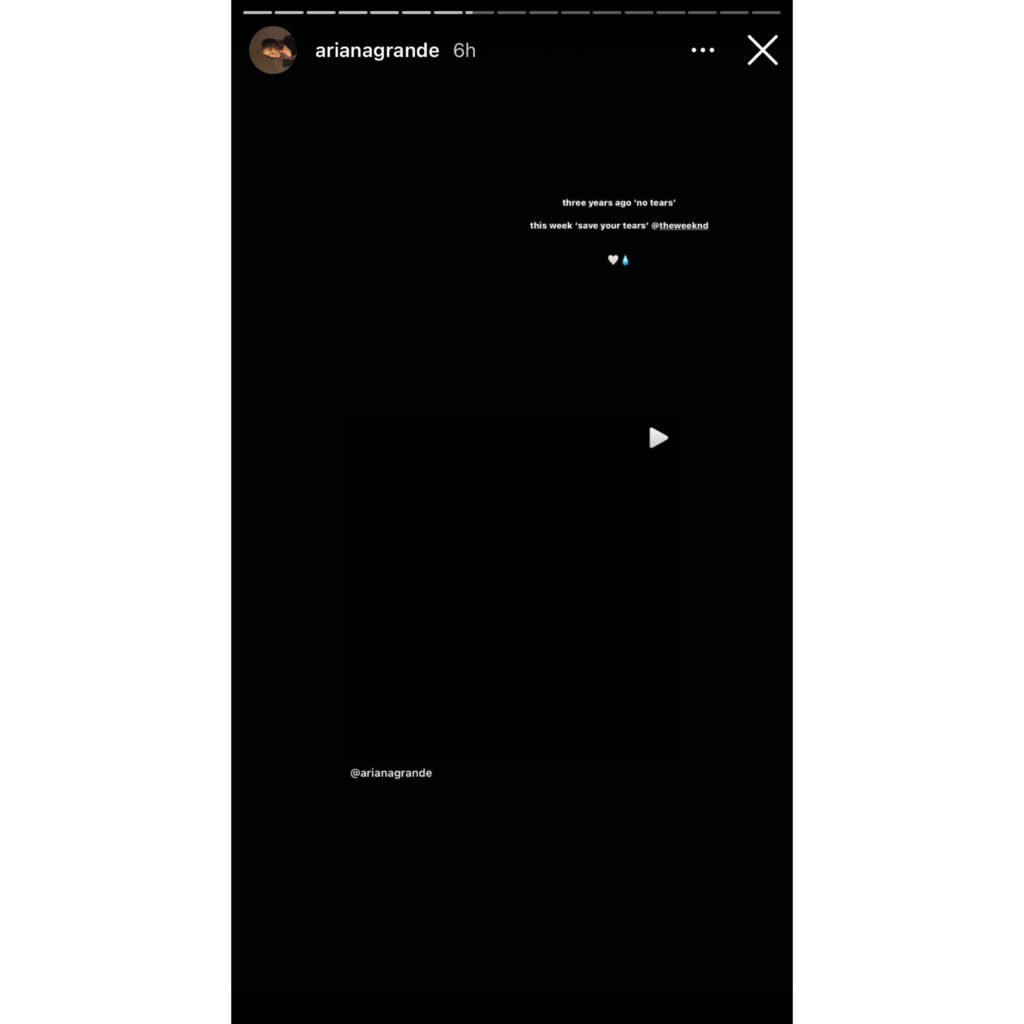 “Three years ago ‘no tears’” and “this week ‘save your tears’ @theweeknd” the story read, as she shared the post of the snippet.