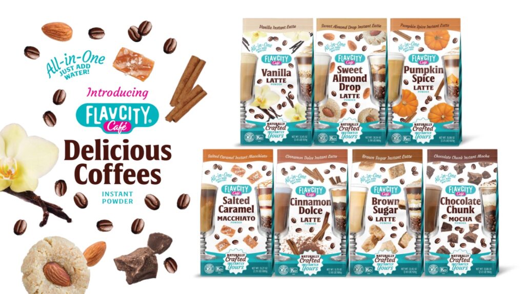 The FlavCity Café lineup includes all the fan-favorite coffeehouse flavors — Cinnamon Dolce, Sweet Almond Drop, Vanilla, and more — made with clean ingredients, 6–7g of grass-fed protein, and zero weird additives. Just add water (hot or cold), shake or stir, and boom: your latte’s done in 20 seconds flat.