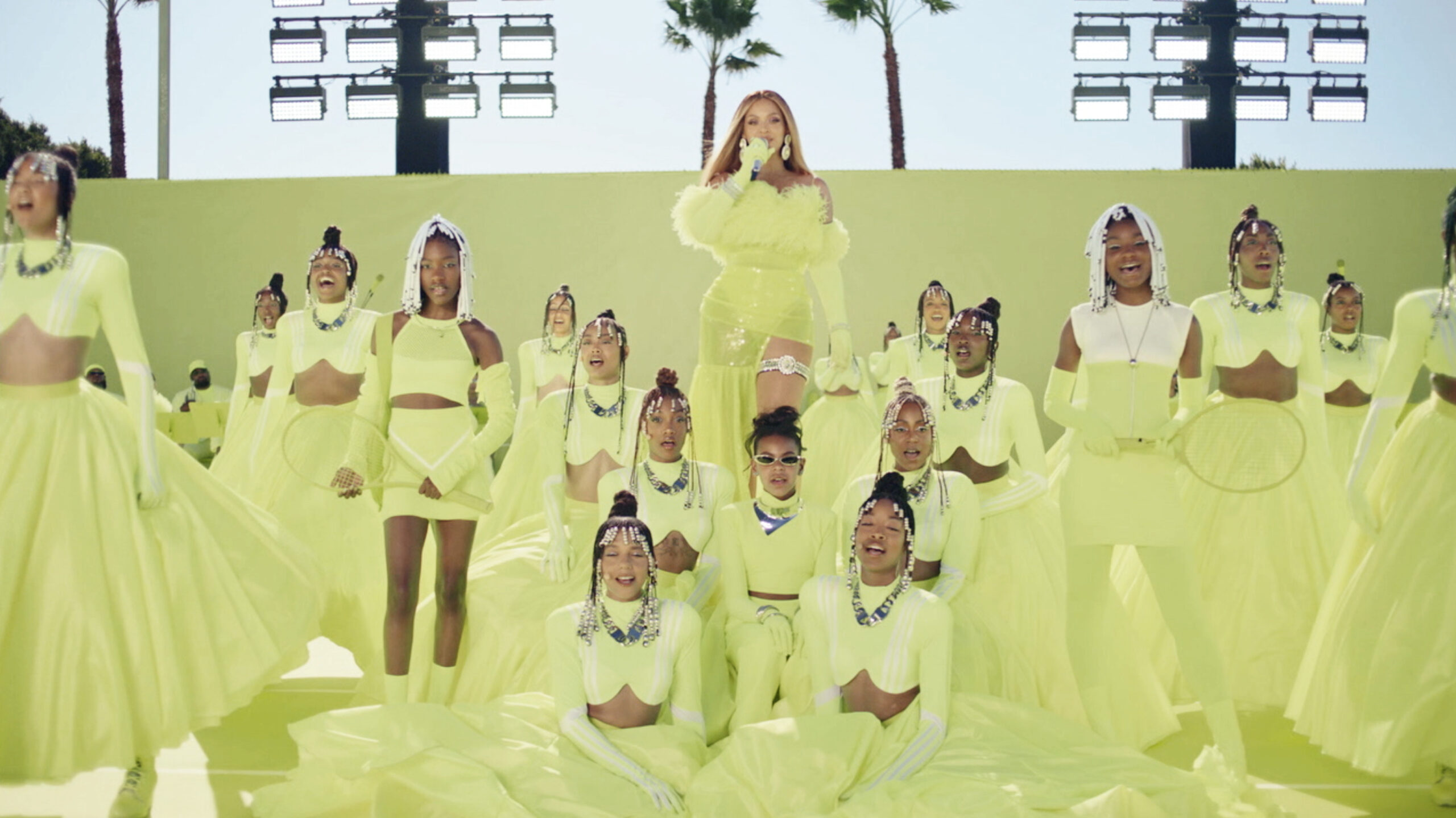 King Richard is a film about Serena and Venus Williams’ dad. Because of this, the singer decided to perform at a stage set in the city of Compton where the girls grew up. Beyoncé looked ethereal in a neon lime green outfit that matched the all neon set.
