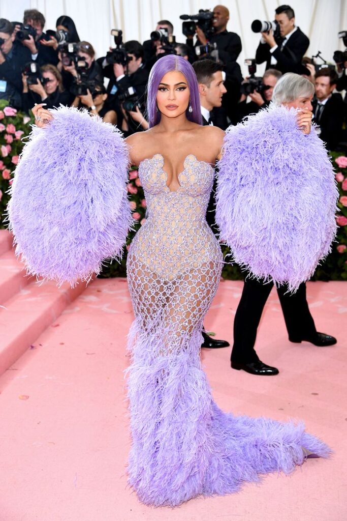 Only Kylie can rock a purple wig with feathered sleeves to the Met Gala!