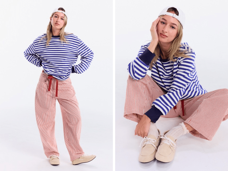 Seaside ease gets a fall refresh—think fisherman chic, but make it Instagrammable. Izzi nails the look in a striped knit and barrel-leg trousers that scream “fall semester coffee runs by the pier.”