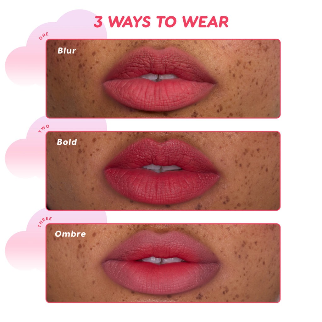 Designed for the beauty lover who wants her glam to feel light, plush, and effortlessly cool, Cloud Whip delivers that soft-focus, diffused lip look TikTok can’t stop romanticizing. Think pillowy colour, dreamy texture, and an ombré effect that looks like you spent way more time on your makeup than you actually did.