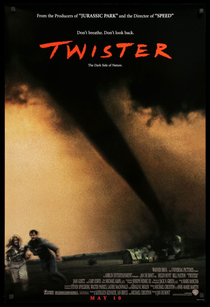 Almost divorced couple Dr. Jo Harding (Hunt) and Dr. Bill Harding (Bill Paxton) have to join forces once more as they try to release a tornado research device into a twister that will help them be able to create an advanced warning system. They battle against Dr. Jonas Miller (Cary Elwes) who has stolen the plans to Bill’s device and plans to take credit for himself.