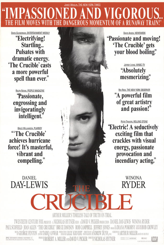 Chances are you probably read The Crucible in high school and if so, there’s a good chance you also watched the film version starring Daniel Day-Lewis and Winona Ryder. The movie, written by original playwright Arthur Miller, is inspired by the Salem witch trials. It influenced our obsession with Ryder way before Stranger Things when she was starring in films like Heathers, Edward Scissorhands and Beetlejuice.