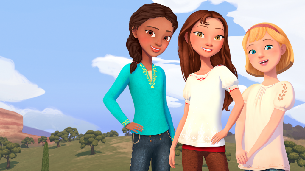 Darcy Rose Byrnes: “Spirit Riding Free is a story about the Mayor of Miradero’s daughter: Maricela (voiced by moi). When city girl Lucky moves into town, Maricella quickly takes her under her wing. Through the show, Maricela will teach the other children of the town how to behave through her winning charm and unbreakable Spirit (that’s where the show gets it’s name). There may be some horses, can’t really remember… But that’s basically what the show’s about. Okay seriously the show is about a girl named Lucky and a wild mustang she names Spirit who form an unbreakable bond with other girls and horses in the town of Miradero. There’s tons of adventure and horses and these girls are really incredible to watch on screen.