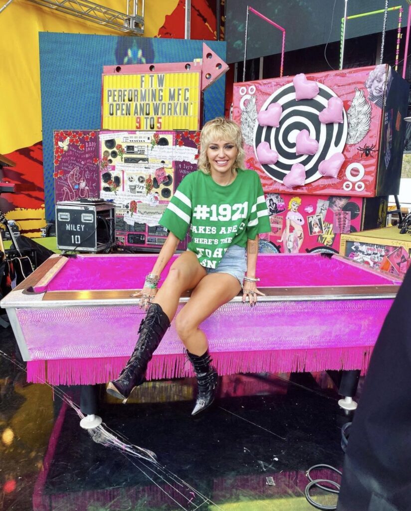 In her true fashion, Cyrus put her heart and soul into the creation of this performance and it shows! The 80s-inspired stage was filled with bright hot pink furniture, including a hot pink fuzzy pool table Cyrus says she decorated herself!