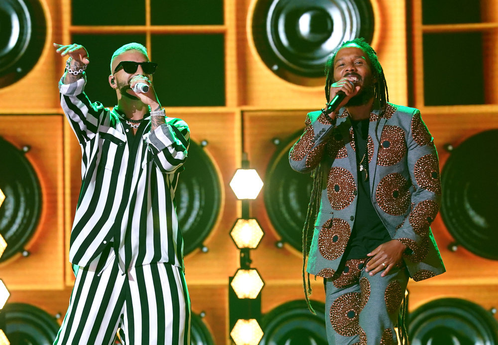 Maluma literally set the stage on fire during his “Tonika” performance at the 2021 Latin AMAs. Equipped with a full band and backup singers, dressed in modern takes on traditional dresses and headscarves, Maluma was joined by Ziggy Marley, the son of the legendary Bob Marley.