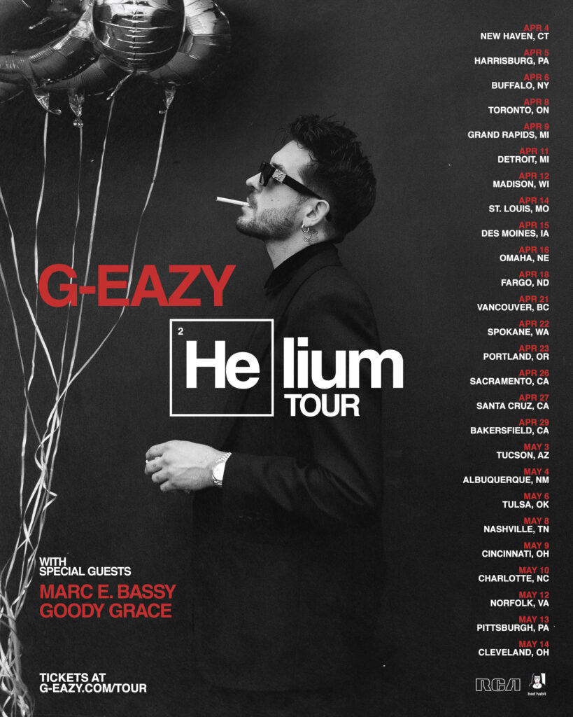 Get ready, G-Eazy fans! The multi-platinum rapper is bringing the heat this spring with the Helium Tour, a 26-date North American trek that will have fans vibing from coast to coast. Plus, he’s dropping a brand-new single “Kiss The Sky” this coming Thursday (February 6), setting the tone for what’s shaping up to be a massive year for the Bay Area superstar.