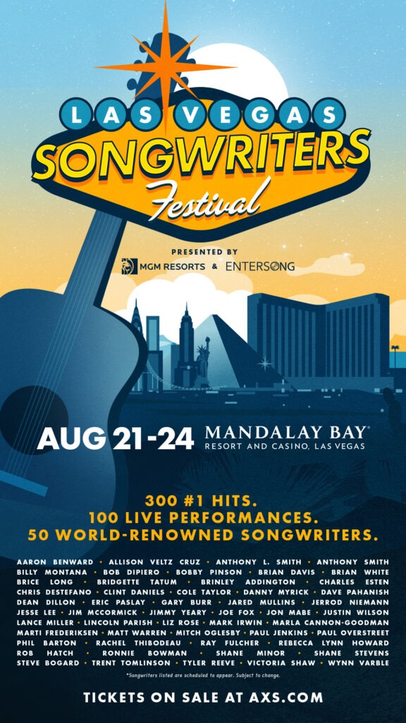 From August 21–24, Las Vegas Songwriters Festival is bringing the real stars of the songs to center stage for four unforgettable days of lyrics, laughter, and behind-the-scenes storytelling. With more than 300 No. 1 hits represented across 100 live performances at Mandalay Bay, the inaugural event is rewriting the Vegas playbook — this time with a Nashville soul and a Southern heart.