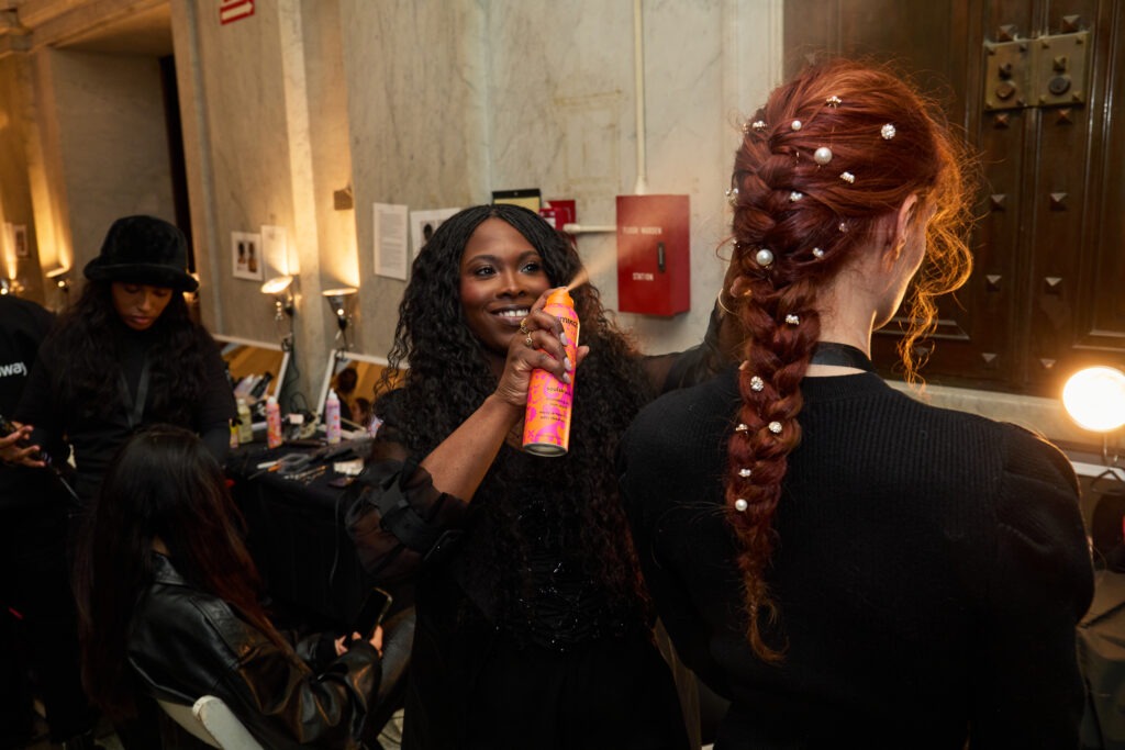 Celebrity stylist Lacy Redway designed the hair for the presentation, using The Kacey Welch Method hair extensions and amika hair products — including the amika’s NEW Soulstruck Nourishing Dry Hair Mask ($32).