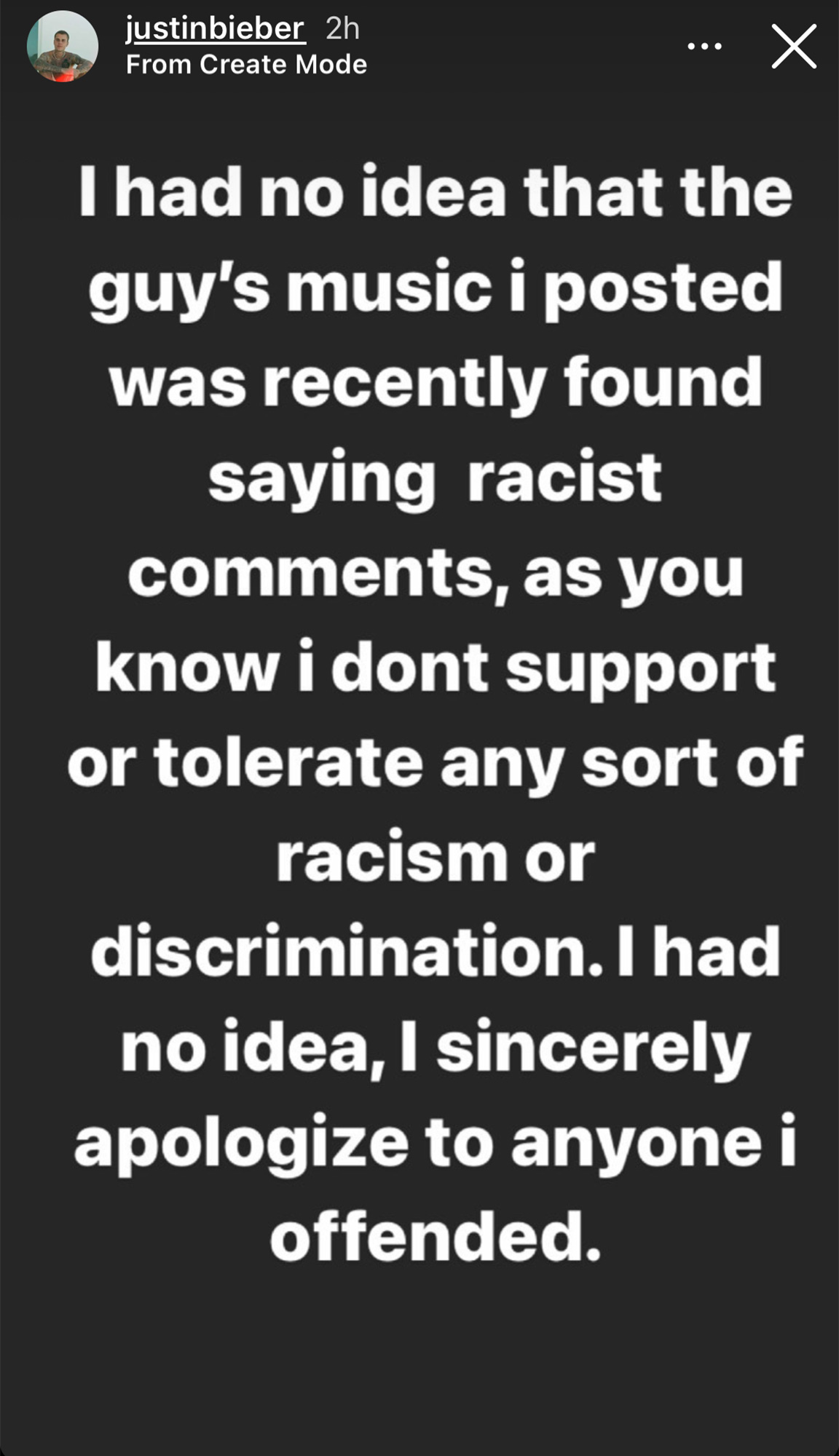 Once Bieber was educated on the matter, he deleted the photo from his story and released an apology statement via Instagram.