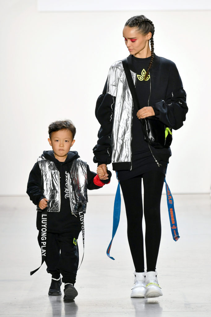 Some of the showcase’s most crowd-pleasing moments occurred when elementary school-age models confidently made their way down the runway sporting Liu Yong x Rishikensh’s upcoming children’s clothing. Decked out in nearly-identical apparel as their adult counterparts, both young girls and boys walked in the show, occasionally alongside an older model in a corresponding ensemble.