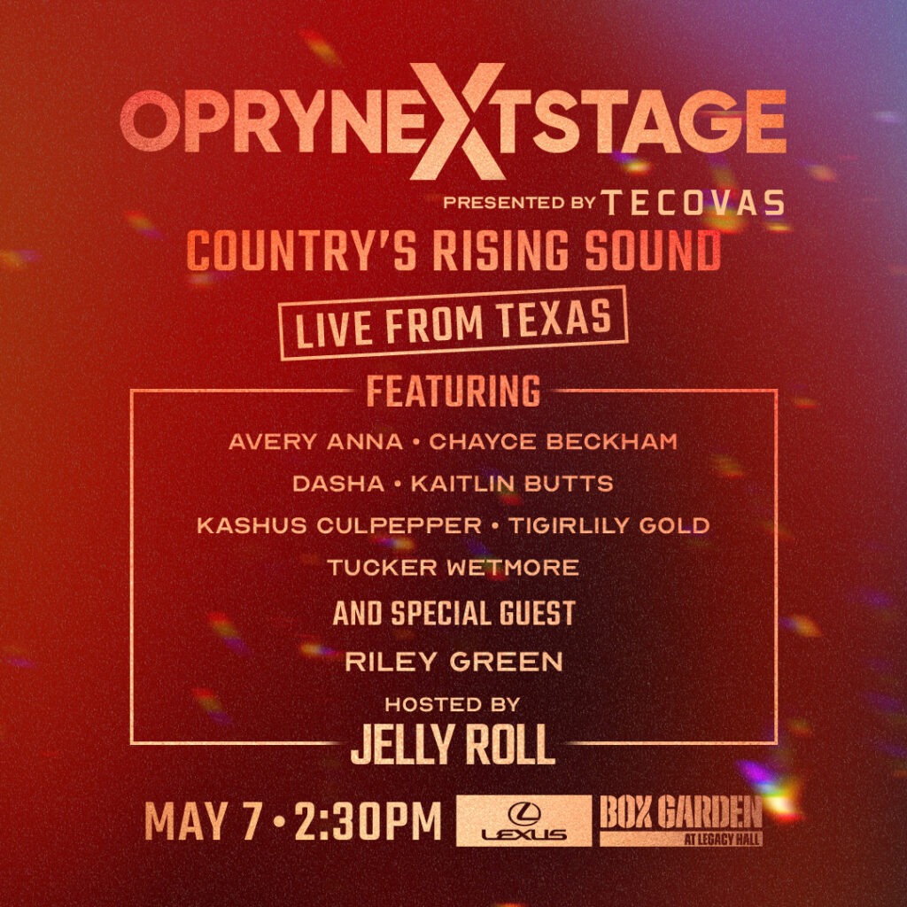 The multi-platinum country heartthrob (and 6x ACM Award nominee this year, thank ya very much!) is joining the already boot-scootin’ lineup of rising stars at the third annual Opry NextStage event, goin’ down May 7 at the Lexus Box Garden at Legacy Hall in Plano, TX. And yep — the one and only Jelly Roll is returnin’ as host for the third year in a row, makin’ this a star-studded shindig worthy of a Texas-sized celebration!