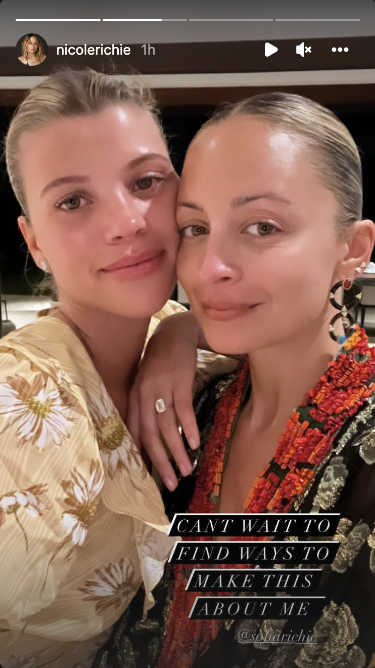 It seems Grainge has gotten the families stamp of approval. Richies older sister, Nicole, reposted their engagement photos, followed by a close up of the two sisters. She jokingly captioned, “Can’t wait to find ways to make this about me.”