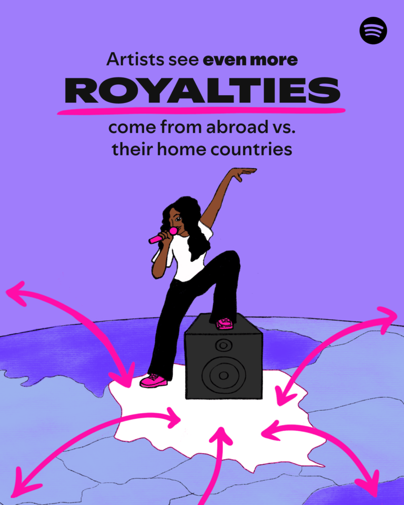 Streaming isn’t just changing who succeeds—it’s changing where success happens. More than 50% of the artists who made at least $1K in royalties on Spotify in 2024 earned the majority of their income from listeners outside their home country. And for those making $100K or more, over 80% have collaborated with international artists, proving that cross-border partnerships are key to sustained success.