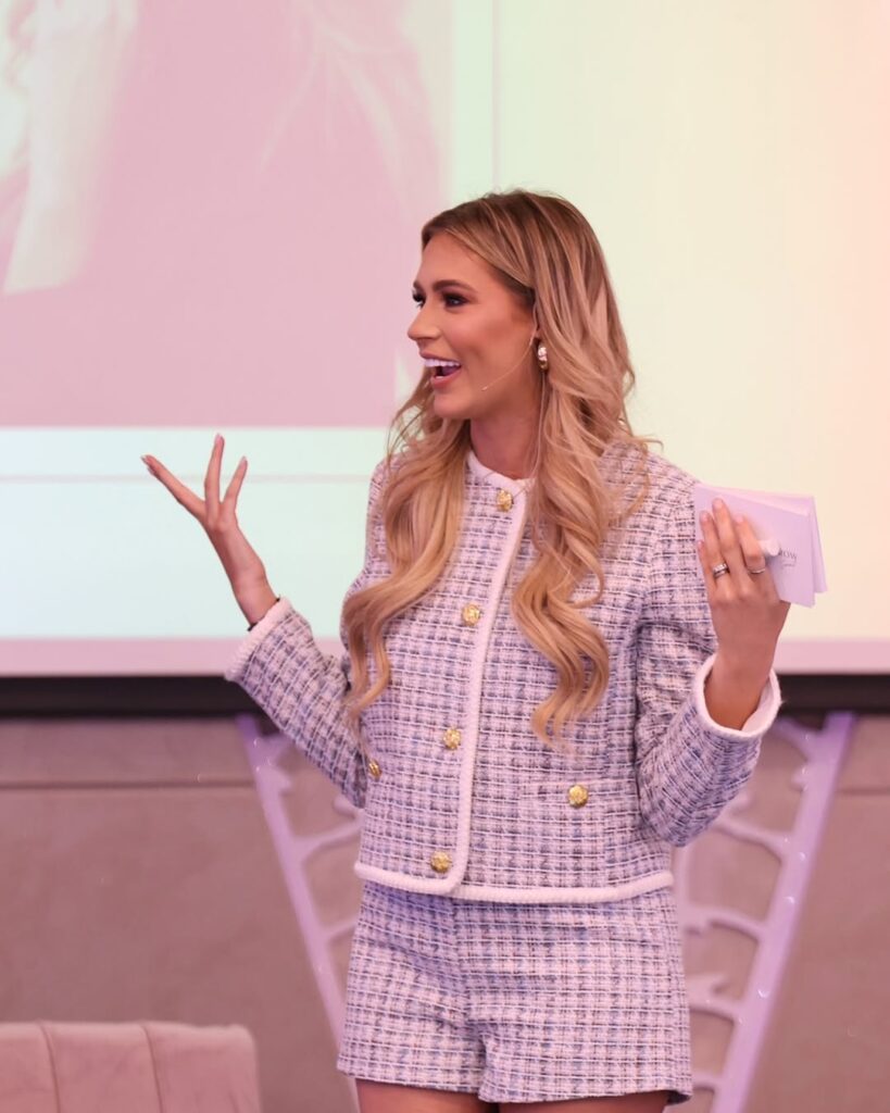 The Summit wasn’t just a platform to showcase the growing spray tan industry — it also highlighted Isabel’s innovative products that are revolutionizing beauty routines. From the Contour Wand ($28), a 3-in-1 sculpting tool, to the Body Setting Drying Powder ($35), Dolce Glow continues to push boundaries with user-friendly, results-driven products. Adding to the excitement, Isabel teased the launch of the Vanilla Lip Butter in Nude ($18), a nourishing lip balm designed to complement her line’s focus on effortless beauty.