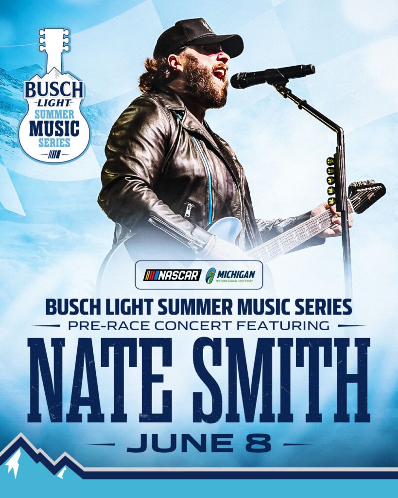 Next up, powerhouse vocalist Nate Smith is taking over Michigan International Speedway on Sunday, June 8, ahead of the FireKeepers Casino 400. If you haven’t heard Nate’s gravelly, soul-drenched voice belt out “Whiskey on You” or “World on Fire,” where have you been?
