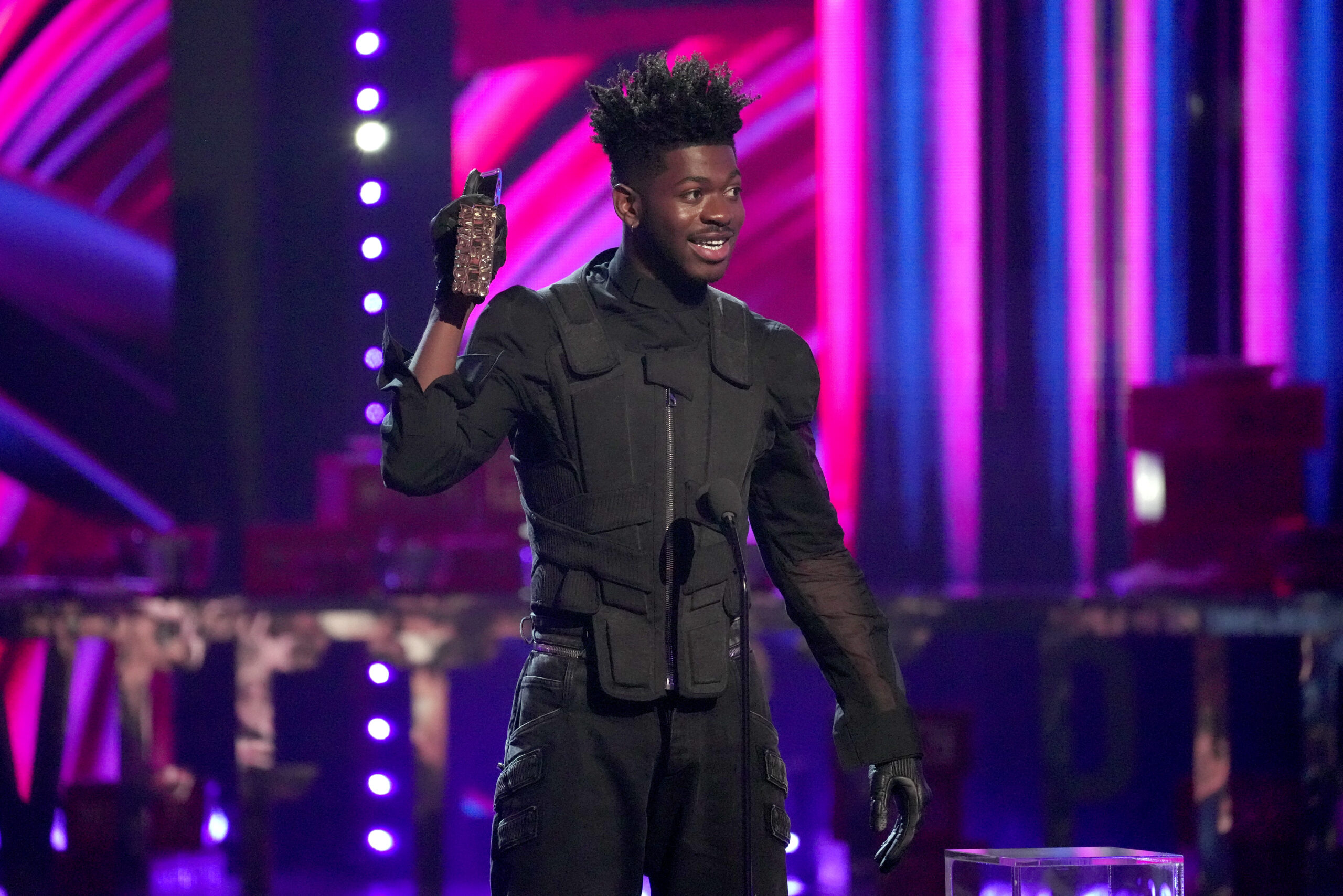 Lil Nas X accepts the Male Artist of the Year award onstage at the 2022 iHeartRadio Music Awards at The Shrine Auditorium in Los Angeles, California on March 22, 2022. Broadcasted live on FOX. (Photo by Kevin Mazur/Getty Images for iHeartRadio )