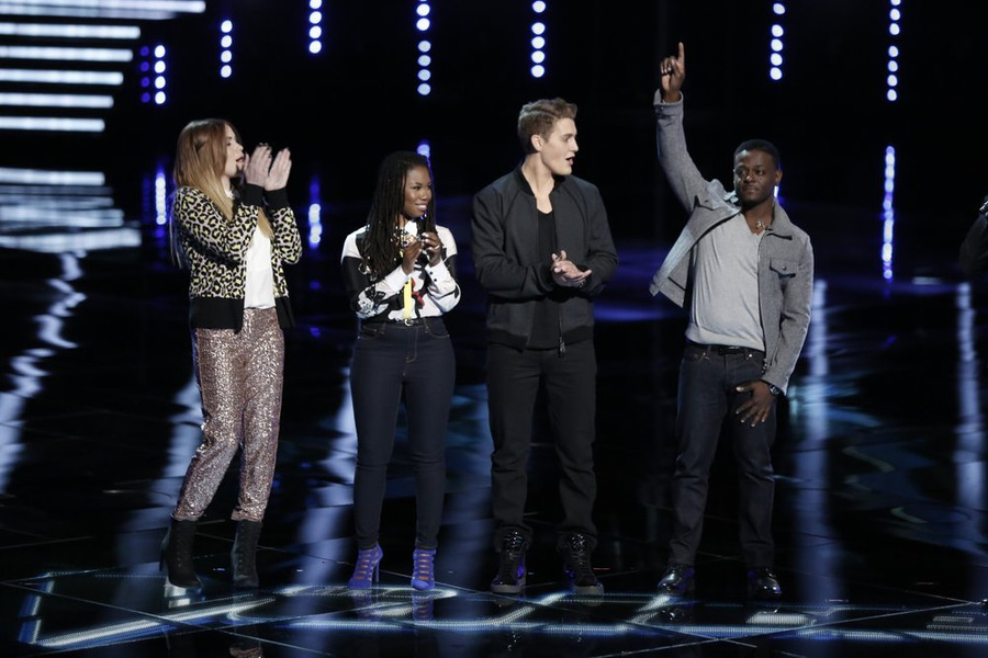 THE VOICE — “Live Show” Episode 715B — Pictured: (l-r) Reagan James, Anita Antoinette, Ryan Sill, Damien Lawson — (Photo by: Tyler Golden/NBC)