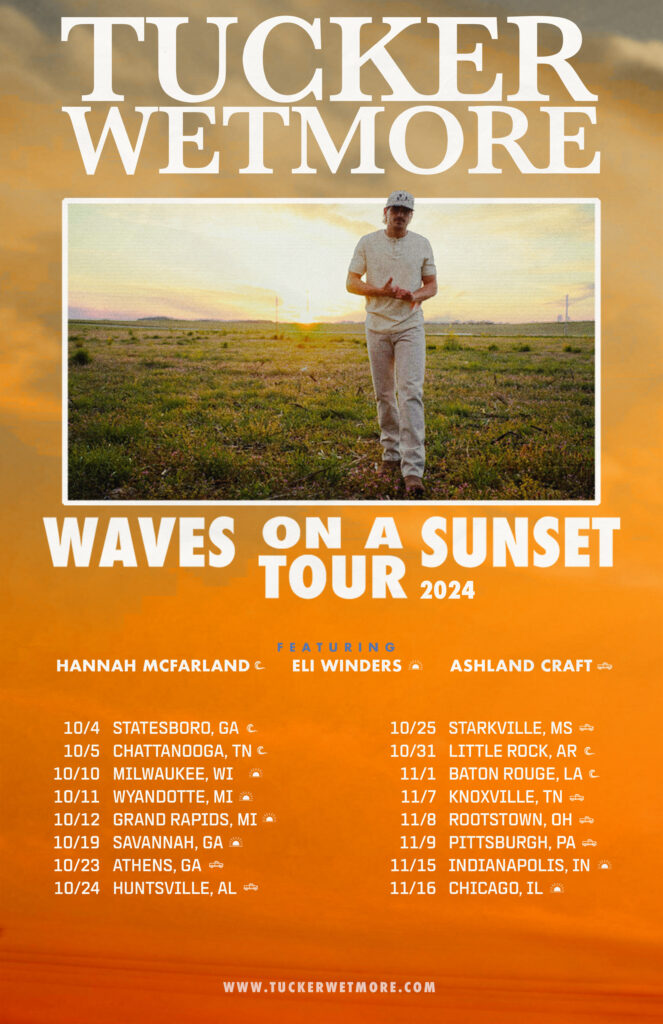 Only six months into his burgeoning career, the Kalama, Washington native has already notched two RIAA GOLD certified tracks, was named Billboard’s Rookie of the Month, made his Grand Ole Opry debut and was tapped as Spotify’s RADAR artist. In terms of playing live shows, the 24-year-old drew at-capacity crowds at CMA Fest 2024, was direct support for Luke Bryan on his FARM Tour and made an appearance to support Cole Swindell at his special Red Rocks show. And today (October 4), Tucker will kick off his nearly sold-out Waves On A Sunset Tour in Statesboro, GA, where he will then hit 17 cities with artists like Hannah McFarland, Eli Winders and Ashland Craft. But it doesn’t stop there… Wetmore also landed a coveted spot on Thomas Rhett‘s Better In Boots Tour as direct support, further solidifying his spot in country music.
