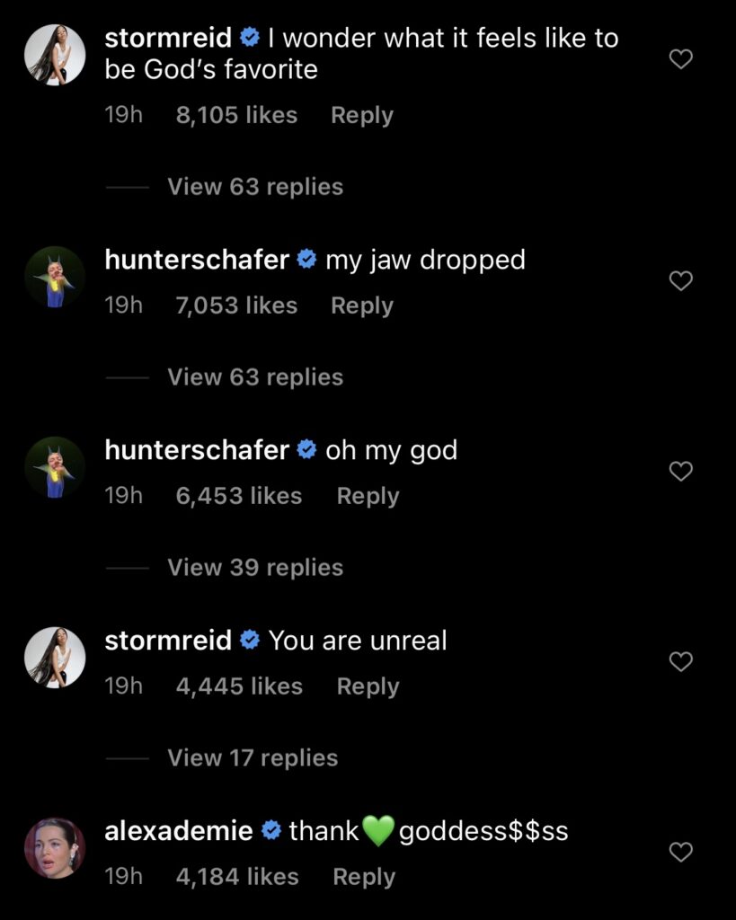 Many celebrities took to social media to react to the star’s jaw-dropping ensemble! In the comments of her Instagram post, her Euphoria co-stars sent their love and admiration for the look. Storm Reid commented, “I wonder what it feels like to be God’s favorite. You are unreal.” Hunter Schafer said, “My jaw dropped. Oh my god.” Alexa Demie simply stated, “thank💚goddess$$ss.”